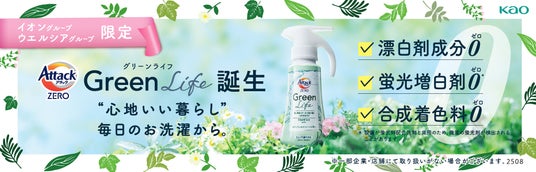 ウエルシア薬局株式会社(本社:東京都千代田区、代表取締役社長:田中純一、以下 ウエルシア薬局)は、全国のウエルシアグループの店舗にて2024年10月1日(火)よりイオンリテール株式会社(以下、イオンリテール)と花王株式会社の衣料用洗剤「アタック」が共同開発した洗剤「アタックZERO Green Life」を販売することをお知らせします。「アタックZERO Green Life」は、「イオン」「イオンスタイル」「マックスバリュ」「ウエルシアグループ」等、全国約4,500店舗※3と「イオンスタイルオンライン」「イオンネットスーパー」「グリーンビーンズ」にて販売されます。