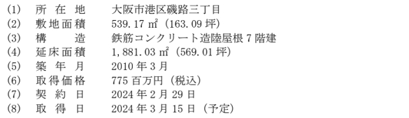 本物件取得により、年間47百万円程度、安定的な家賃収入を売上高として確保するとともに、年間30百万円程度、親会社株主に帰属する当期純利益が増加する見通しであります。