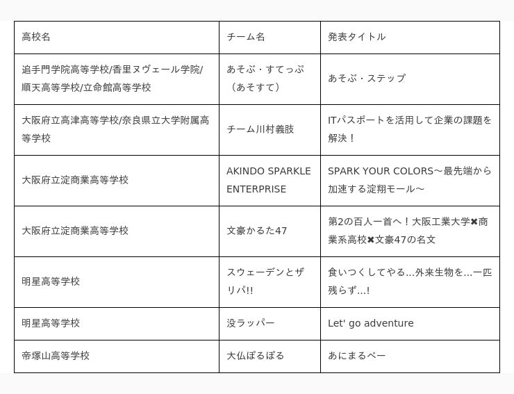 今年度は、国家試験であるITパスポートを取得し、ITの力を用いて企業の課題を解決することを目的とした【企業活動基礎講座インターンシップ型プログラム】や、ゲーム、アプリケーション、データ分析からモビリティなど、最新テクノロジーを用いて、世の中の課題を解決する事を目的とした【デジタル活動をはじめよう!~デジタルスキル実践チャレンジワークショップ~】など、京阪神における高校生等に向けたアントレプレナーシップ人材育成を目的とした多くのプログラムを実施してきました。2024年2月10日(土)、1年間の活動の集大成となるカンファレンスで、「未来」を担う高校生たちの第一歩をぜひご覧ください。