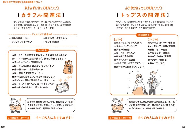 その他、16種の“法演流開運テクニック”や、恋愛だけでなく職場・友人関係にも役立つ“人間関係相性ガイド”、コラム“法演の幸せのメッセージ”も掲載。