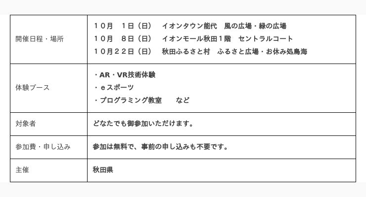 最新のデジタル技術に対する理解や関心を深めるため、様々なデジタル技術を体験できる「Let's コネクト!デジタル未来ふれあいフェスタ2023」が秋田県内の3ヶ所の会場で開催されます。
