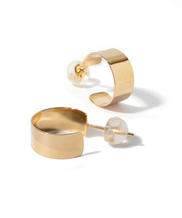 アップスタイルにも映えるシンプルデザインでで、大人に似合うおしゃれなフープピアスに。