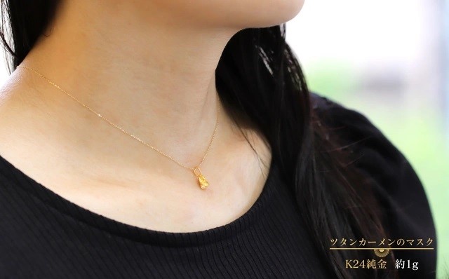 純金のツタンカーメンのマスクをいつも身に着けてパワーをもらえるようペンダント仕様もご用意しました。
