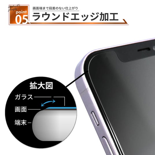 ガラスフィルムの縁は滑らかな曲面になっており、