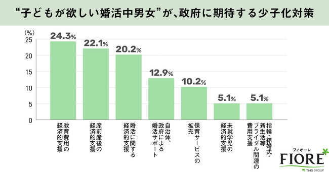 TMSグループの結婚相談所フィオーレ(https://www.total-marriage.com/)は、婚活中の男女に、政府に期待する少子化対策についての意識調査を実施いたしました。