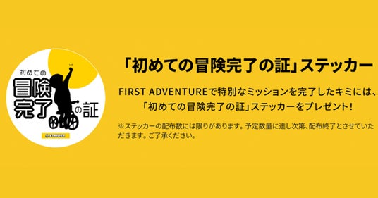 ファーストアドベンチャーで特別なミッションを完了したお子さま全員に「初めての冒険完了の証」ステッカーをプレゼント。この春、子どもたちにとっての冒険の第一歩を応援いたします。