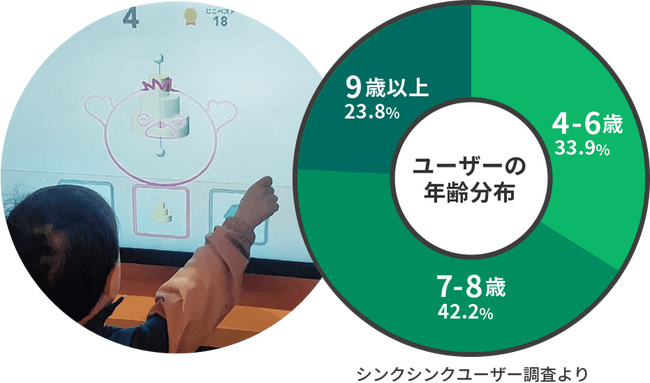 シンクシンクのユーザー数は2023年3月時点で250万人を突破し、言語の壁を超え世界150か国の子どもたちに愛されています。近くの店舗や施設で大画面のシンクシンクがプレイできることをアプリユーザーに訴求することで、来店機会がなかった新規顧客の集客効果が期待できる他、既存顧客へのリピート来店の動機付けにもなります。