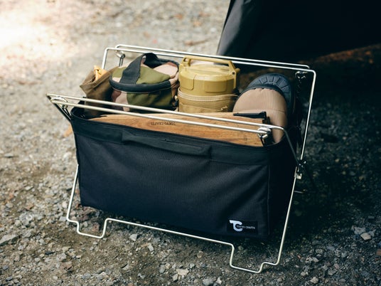 コードユニットに取り付けられるオプションパーツは様々リリースされており、全て利便性をより向上させてくれる、あると嬉しいアイテム。特に、「マルチバッグ」や「キバ ソフトクーラー」、「コードユニット 薪ホルダー」は製品カラーがブラックなので、新色のコードユニットとの相性も抜群。ブラックで全て揃えて、最高にクールな自分だけのキャンプサイトを演出する事も可能です。