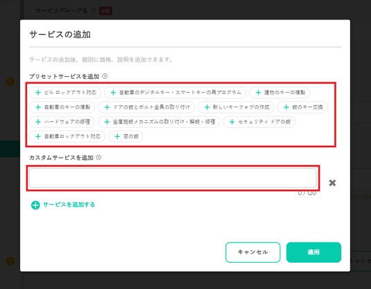 3.プリセットサービスを選択、またはカスタムサービスを追加します。