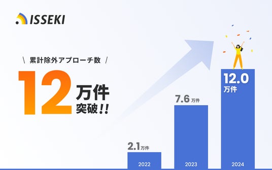 2022年2月に提供開始した競合出稿・ブランド毀損の対策サービス「ISSEKI」は、2024年10月31日時点で不正出稿に対する累計除外アプローチ数が12万件(※1)、累計除外数が2万件(※2)を突破いたしました。