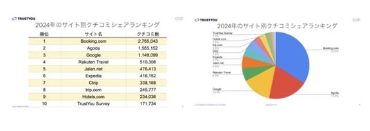 2024年に最もクチコミが投稿されたOTAサイト(旅行予約サイト)は2023年に引き続きBooking.comという結果となりました。2位には2023年は3位だったAgoda、3位にGoogle、4位楽天トラベル、5位じゃらん.netと続きました。