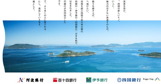 阿波銀行、百十四銀行、伊予銀行、四国銀行が各々25%ずつ出資している「Shikokuブランド株式会社」「Shikokuブランド株式会社」は、四国4県の地方銀行が志を一つにし、共同で設立した国内初の地域商社です。