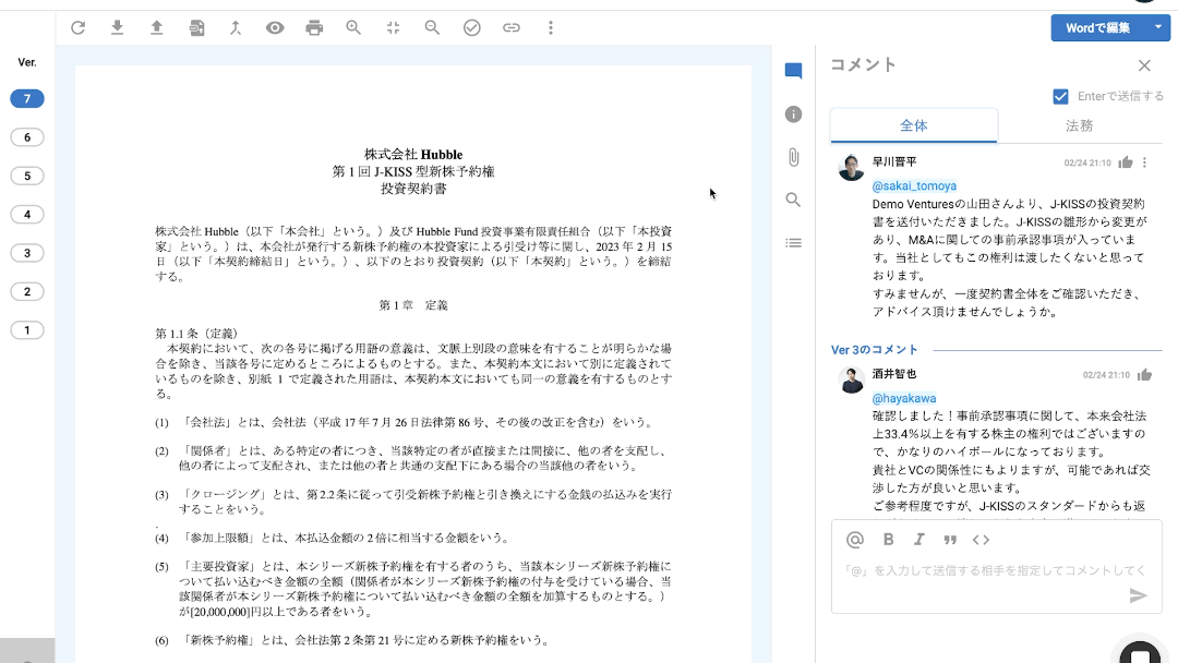 株式会社Hubble(東京都港区、CEO:早川晋平)が提供する契約書管理クラウドサービス「Hubble(ハブル)」は、法務部門内だけで完結したいコミュニケーションを、契約書の情報と離れることなく、Hubble上でやり取りができる「法務コメント」機能を実装しました。