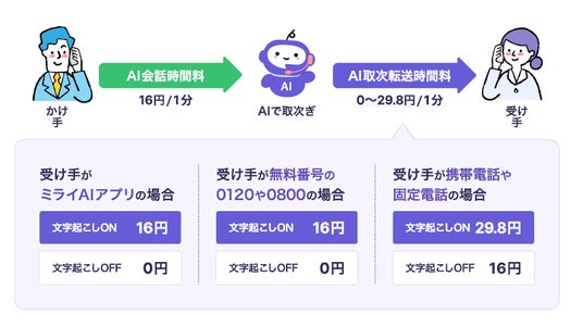 株式会社ソフツー(東京都中央区 代表取締役:鍾 勝雄)が運営するAI電話サービス「ミライAI」はAI取次転送時間料の新体系を導入しました。