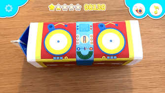 クラフトキットにはさまざまな「音」が録音された「オトッペレコード」6枚と、身近な音を自分で録音できる「ろくおんレコード」3枚がセットになっています。DJセットの2つのターンテーブルにレコードを置いてアプリで読み込むと、AR技術によってスマホ画面の中でレコードが回り出し、指でタッチするとスクラッチやミックスなどのDJプレイが楽しめます(※)。