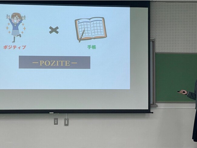 高校生はたくさんの悩みがあり心が沈みがちという調査結果を見つけたところから今井琴葉、高山彩香さんはこれを手帳で解決したいと企画案に着手します。そして、毎日が楽しく、前身向きになれるように自分だけのポジティブな世界を作りながら使ってほしいという願いを込めPOZITE(ポジティブ×手帳)を考えました。