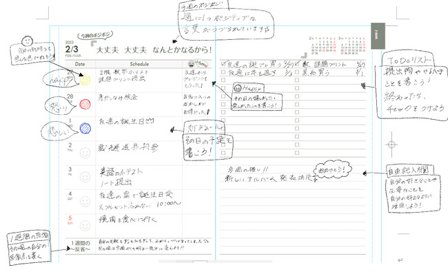 ・1週間に1個「私たちが考えた」ポジティブな言葉を手帳に載せてもらい、ポジティブなエールを送りたい。