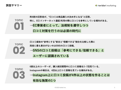 この2つの調査結果を踏まえ、EC事業者様にとって、口コミ対策に取り組むことがとても重要という事実が明らかになりました。