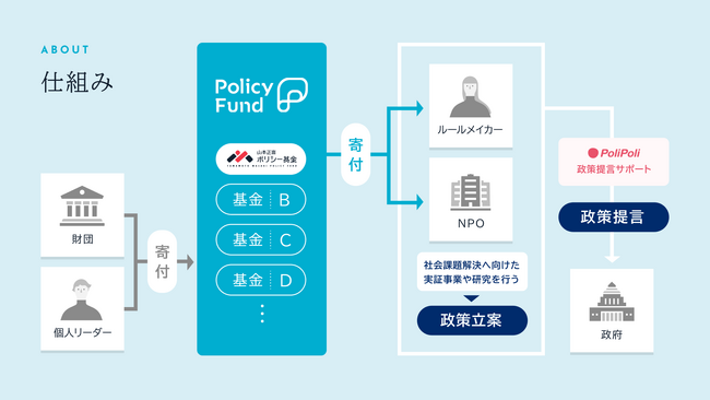「Policy Fund」は、政策を軸にした、社会課題解決を加速するための寄付基金です。