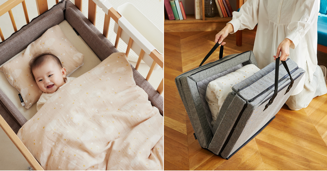 阪神梅田本店で開催するDADWAYのポップアップフェアにて、「コンパクトベッドFree/ドリーミングスター/メランジブラウン」を展示し、ご予約を承ります。コンパクトベッドをベッドインベッドとして使える、farskaの「クリエイティブコット」も合わせて展開。また、同じドリーミングスター/ブラウンのシリーズを先行発売します。
