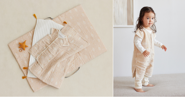 同じテキスタイルを使用した「ガーゼスリーパー」、「お昼寝マット」、「ガーゼケット」の3商品も9月15日に発売。赤ちゃんのおやすみタイムに寄り添います。