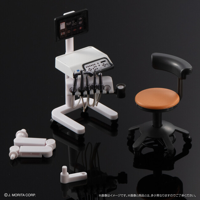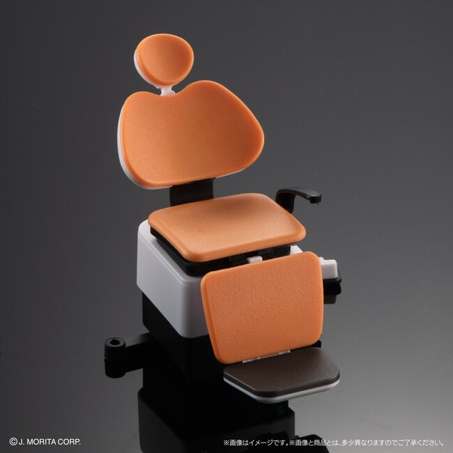 本商品は歯科チェア国内大手製販売社の株式会社モリタとの共同開発により、 全国の歯科医院で使用されている「シグノ T300」を患者用の椅子とその周りの機器も本物同様に 1/12 のサイズで再現したリアルフィギュアで、歯科チェア、歯科衛生士パート、歯科医パートの 3 つを集めると 歯科医院さながらの歯科チェアが完成します。