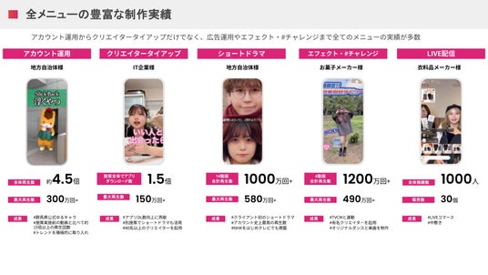 また、クリエイター事務所機能を抱えていることで、クリエイター視点でのコンテンツ制作も取り入れられており、TikTokにおいて、コンテンツ制作をする上での強みとなっております。