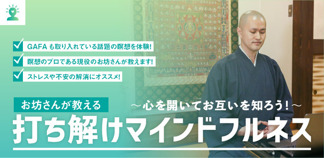 瞑想のプロであり、カウンセラーの資格を持つ僧侶・榮雅住職が講師として登壇します。