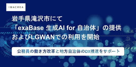 株式会社イマクリエ(本社:東京都港区、代表取締役:鈴木信吾、以下、当社)は、岩手県滝沢市に「exaBase 生成AI for 自治体運用パッケージ」の提供を開始したことをお知らせします。