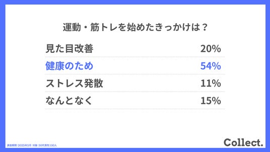 - 54%が「健康維持」目的でトレーニングを開始。加齢を意識した取り組みが主流