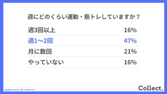 ディーエムソリューションズ株式会社(東証スタンダード上場)が運営するメディア「Collect.(コレクト)」では、30代男性100人にフィットネスについてのアンケート調査を実施しました。
