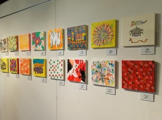 アイネットは、アート展の展示作品の内2点を制作者からお借りして、当社の本社エントランスエリアに、2025年4月~2026年3月までの期間、半年毎に作品を入れ替えて展示することにいたしました。障がいのある方の作品の魅力を多くの方々にお伝えしてまいります。