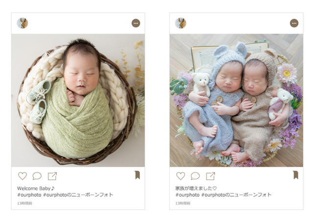 このような背景を踏まえ、「OurPhoto」では、新生児期の今しかない貴重な一瞬や、家族の“特別な日“を写真として思い出に残して欲しいと考え、今回のキャンペーンの実施に至りました。