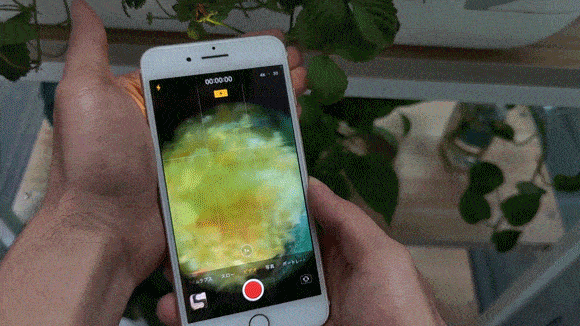 粘着性ゴムで顕微鏡レンズをスマホのカメラに貼ると、スマホで微視的画面を直接観察できます。