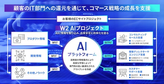 EC事業の「成功」にこだわる最先端ECプラットフォームを展開するW2株式会社(本社:東京都中央区、代表取締役:山田大樹、以下W2)は、EC構築支援において、全てのお客様に高品質のサービスを提供し、さらには作業効率を高める目的から、AI活用プロジェクトをスタートしたことをお知らせ致します。