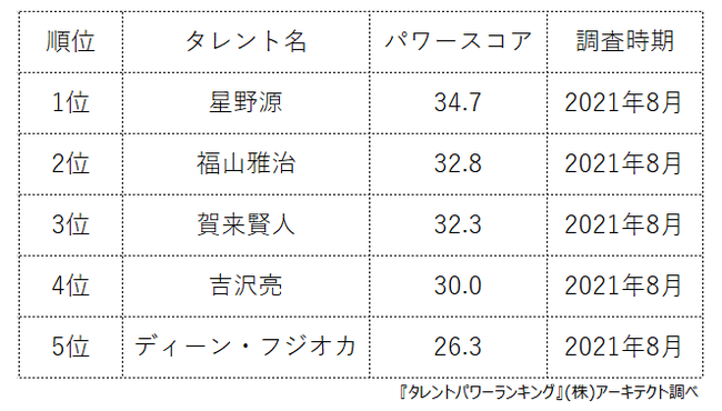 株式会社アーキテクトが実施しているタレントパワー定期調査から、2021年8月度調査のデータを使用。(一部過去のデータを使用)