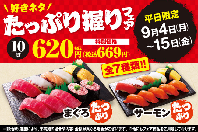 持ち帰り寿し店の「小僧寿し」「茶月」を運営する株式会社小僧寿しは、持ち帰り寿し店「小僧寿し」にて、9月4日(月)~8日(金)、11日(月)~15日(金)の平日限定で、「たっぷり握りフェア」を開催致します。
