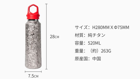 チタンは鉄の3分の2、銅の2分の1の重さなので持ち運びには適した素材です。同容量のステンレス水筒は通常500g超えますが、純チタンボトルSWISS MILITARYはわずか257g。