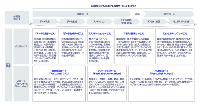 AI開発プロセスにおける当社サービスラインナップは以下の通りです。
