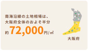 たとえば、南海沿線エリアの土地相場は、大阪府全体のおよそ半分(約72,000円/平方メートル )とされ、住居費を抑えながら選択肢を広げやすい点が特徴です。また、沿線各地には新鮮な野菜や果物を扱う直売所が約45か所、朝市などで鮮魚を購入できる漁港が12か所あり、気軽に新鮮な食材を手に入れることができる環境が整っています。