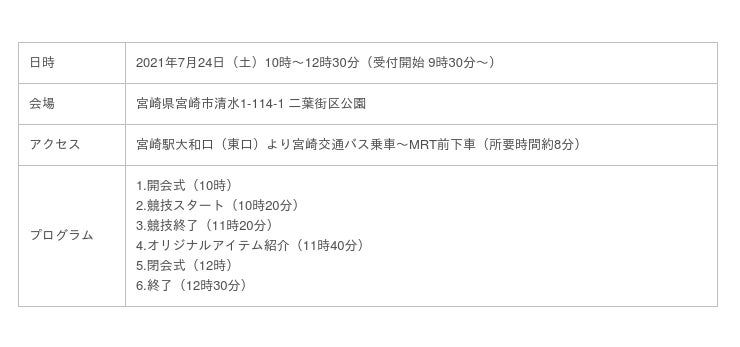 ●予選宮崎大会イベント概要 ※悪天候のため7月24日(土)に順延