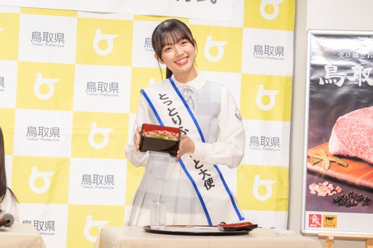交付式では、大使就任後の初仕事として、鳥取県のご当地メニューの食レポにチャレンジし、「鳥取の魅力をもっともっと発信し、大好きな鳥取県にたくさん恩返しができるように頑張ります!」とコメント、鳥取愛とふるさと大使としての抱負を語っていただきました。