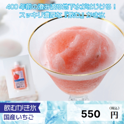 地下250mより汲み上げた信州深層天然水の氷を使用。レモン、いちご、ナガノパープルなど全3種類のバリエーション。