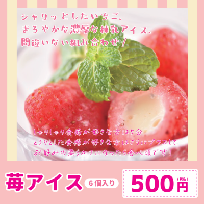 苺と練乳アイスのハーモニーが口の中で広がります。解凍時間によって様々な食感が楽しめます。