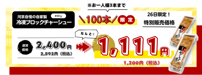 ※26日限りの販売価格です。お一人様3本までとさせていただきます。