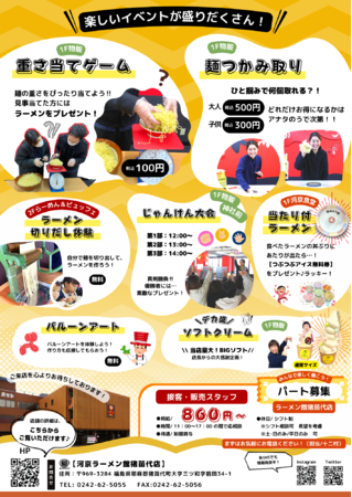 株式会社河京 ラーメン館猪苗代店(本社:福島県喜多方市、代表取締役:佐藤富次郎)は、3月26日(日)「ら~麺天国(パラダイス)」を開催します。