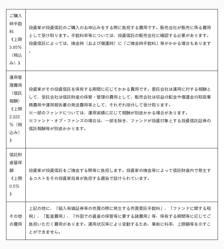 以下の費用の合計額については、投資家の皆様がファンドを保有される期間等に応じて異なりますので、 表示することができません。
