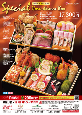 株式会社あいプラン(北海道札幌市/代表取締役・新道喜信)のレストランで、毎年人気のスペシャルオードブルボックスの予約販売を開始いたしました。美しい盛り付け済みのお料理が全23種類入り。今年は30個限定のプレミアムボックスも新たに販売。