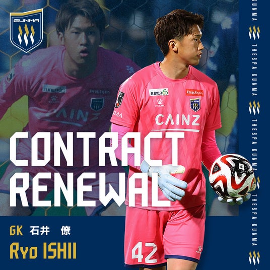 この度、石井 僚選手の契約更新が決まり、2025シーズンもザスパ群馬でプレーすることが決まりましたので、お知らせいたします。