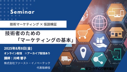株式会社マーケティング研究協会は2025年8月8日、オンラインセミナー 技術マーケティング × 仮説検証~技術者のための「マーケティングの基本」~を開催します。期間限定アーカイブ配信有。